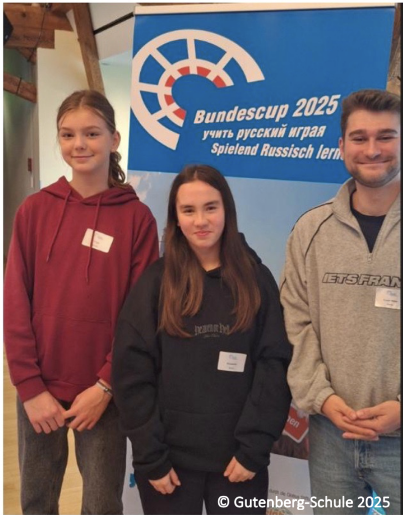 Finja, Elisabeth und Herr Miller sind in diesem Jahr nach Gotha gereist, um unsere Schule beim Bundescup “Spielend Russisch lernen” zu vertreten. Auch wenn sie nicht gewonnen haben, hatten sie viel Spaß und konnten viele tolle Eindrücke sammeln. Den Bericht unserer beiden Schülerinnen Elisabeth und Finja findet ihr hier.