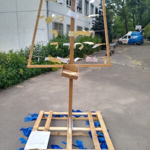 Die 8c erstellte in Zusammenarbeit mit der AG Holzprojekte zwei Flöße, die metaphorisch die Bedeutung von Idealen in unserer Gesellschaft verdeutlichen sollen. Dabei bilden die Ideale der Schüler*innen die Segel der Flöße, die uns als Gesellschaft tragen. Ein Floß wurde bereits im Vorfeld des Anne Frank Tages auf dem Schulhof ausgestellt, sodass sich die gesamte Schulgemeinschaft an der Gestaltung des Segels beteiligen konnte. Das zweite Floß trägt die Ideale der Klasse 8c und wurde bei der Eröffnung von Mara vorgestellt.